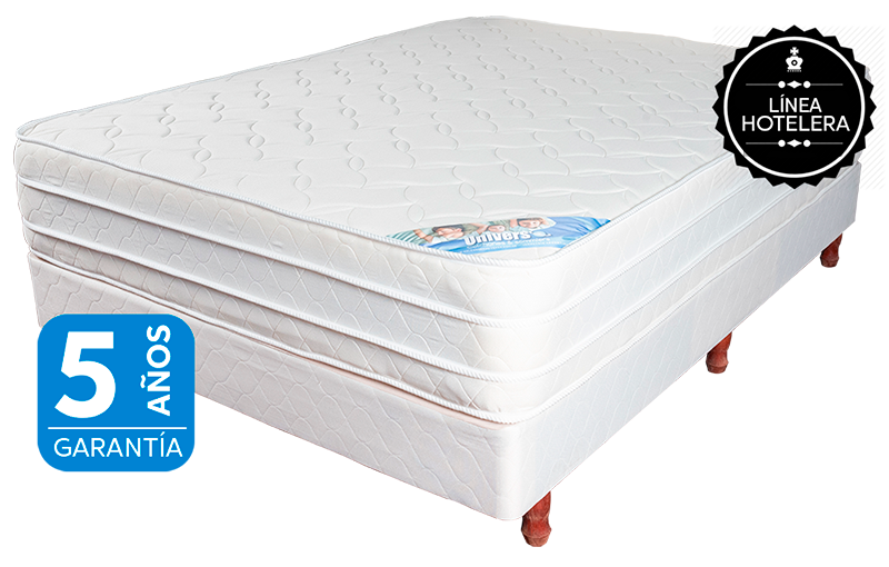 Elaborado con resortes sistema bonell con doble marco perimetral de acero templado, estabilizadores longitudinales y transversales. Dicha estructura mejora la distribución del peso corporal, aumenta la vida útil del producto, permite que la espalda y la columna descansen adecuadamente. Maximiza la superficie aprovechable del colchón evitando que sus bordes se deformen al sentarse.
